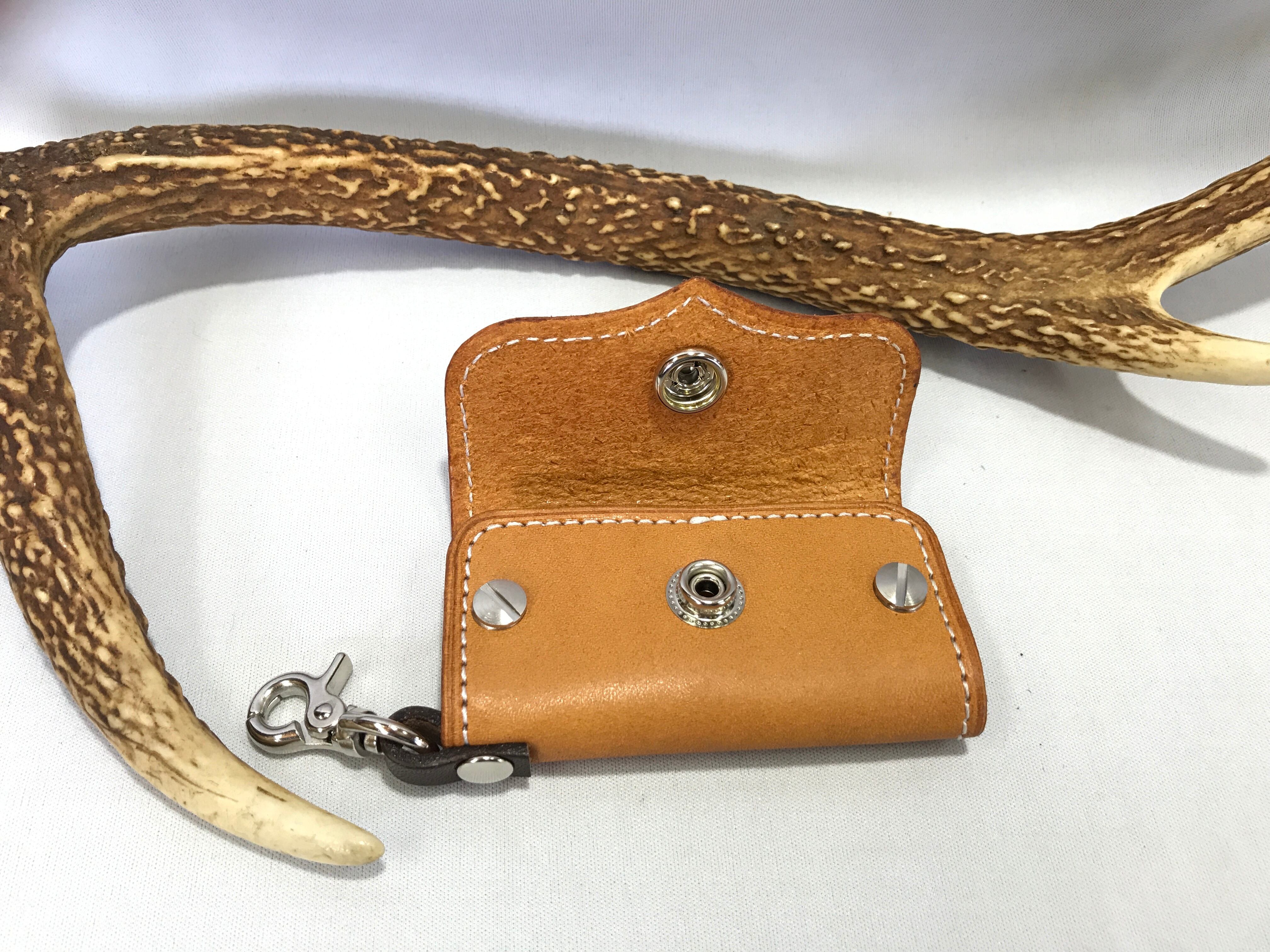 ヌメ革キャメルカラーの組みネジを使ったコンパクトなキーケースです。